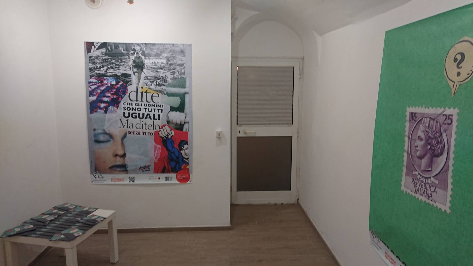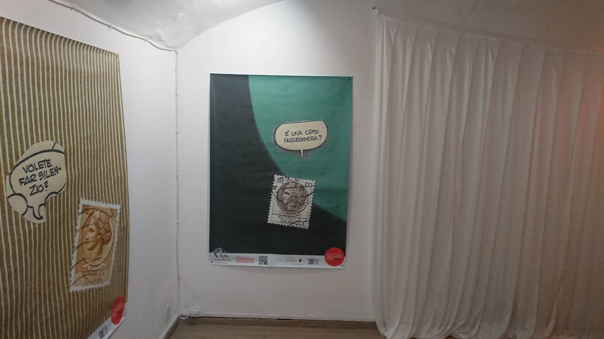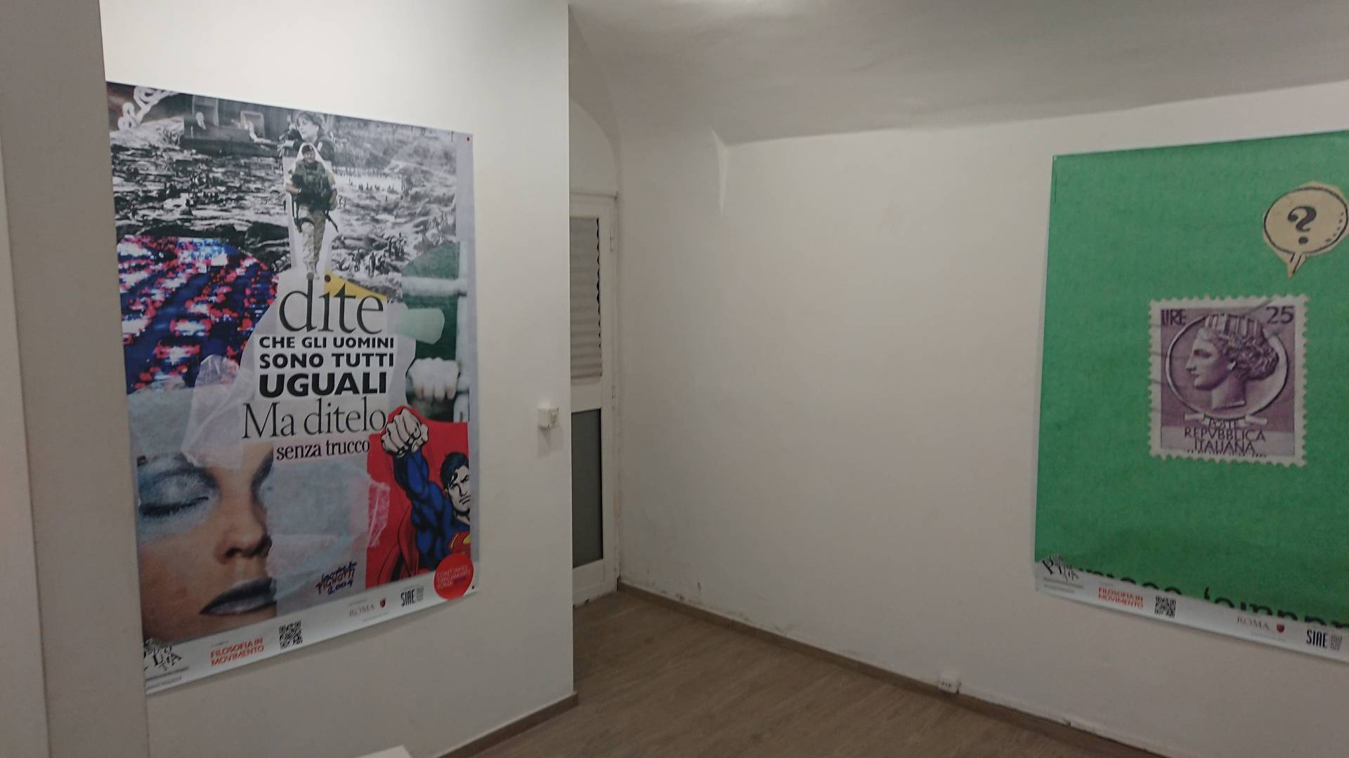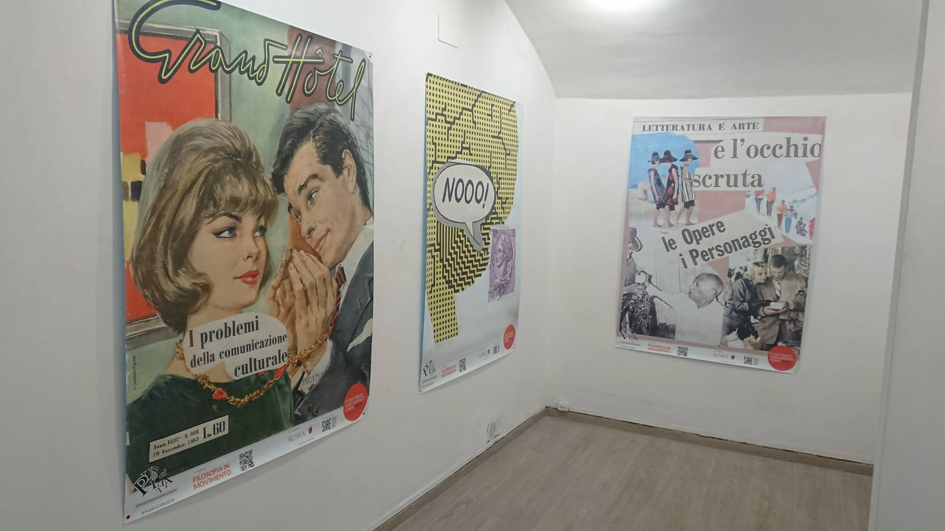Tra i pilastri della programmazione in corso si trova la serie di affissioni per le strade di Roma di “opere-manifesto” dell’artista Lamberto Pignotti. Padre della Poesia Visiva, Pignotti da tempo collabora attivamente con Filosofia in Movimento, facendo anche parte del Comitato scientifico dell’Associazione. Con questa iniziativa, le sue iconiche poesie visive, stampate centinaia di copie, invadono la città in una vera e propria azione artistica a cielo aperto.